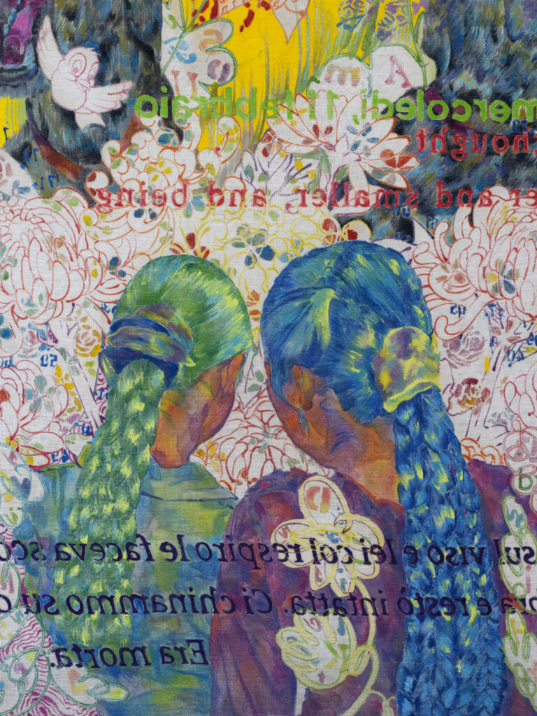 Giuditta Branconi, Cannon Fodder at the Collezione Maramotti By Marianna Reggiani 14.04.2026 Clicca qui per leggere questo articolo in italiano The canvases overflow in Cannon Fodder, the first solo exhibition by Giuditta Branconi in an institutional space. Through a painting practice based on the accumulation of signs and symbols, the young artist saturates the space, erasing any hierarchy between styles,
