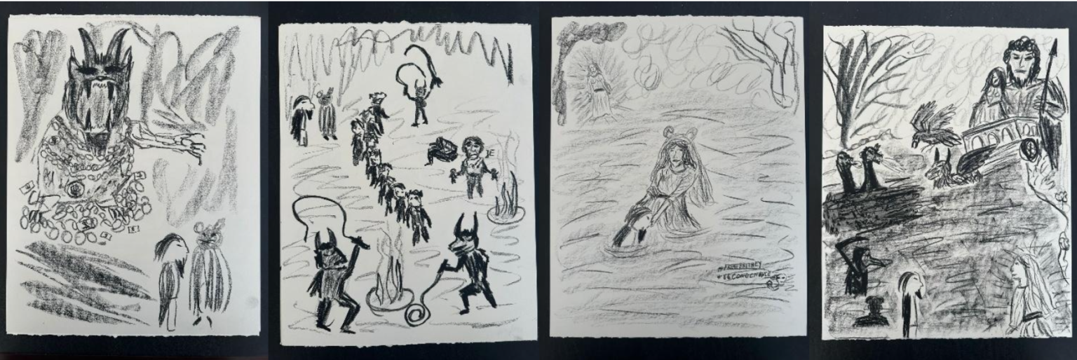 Giulio Catelli, Le candele e l’uccellino, 2025, inchiostro su carta 30×21 cm, Courtesy Galleria Richter Fine Art, Roma