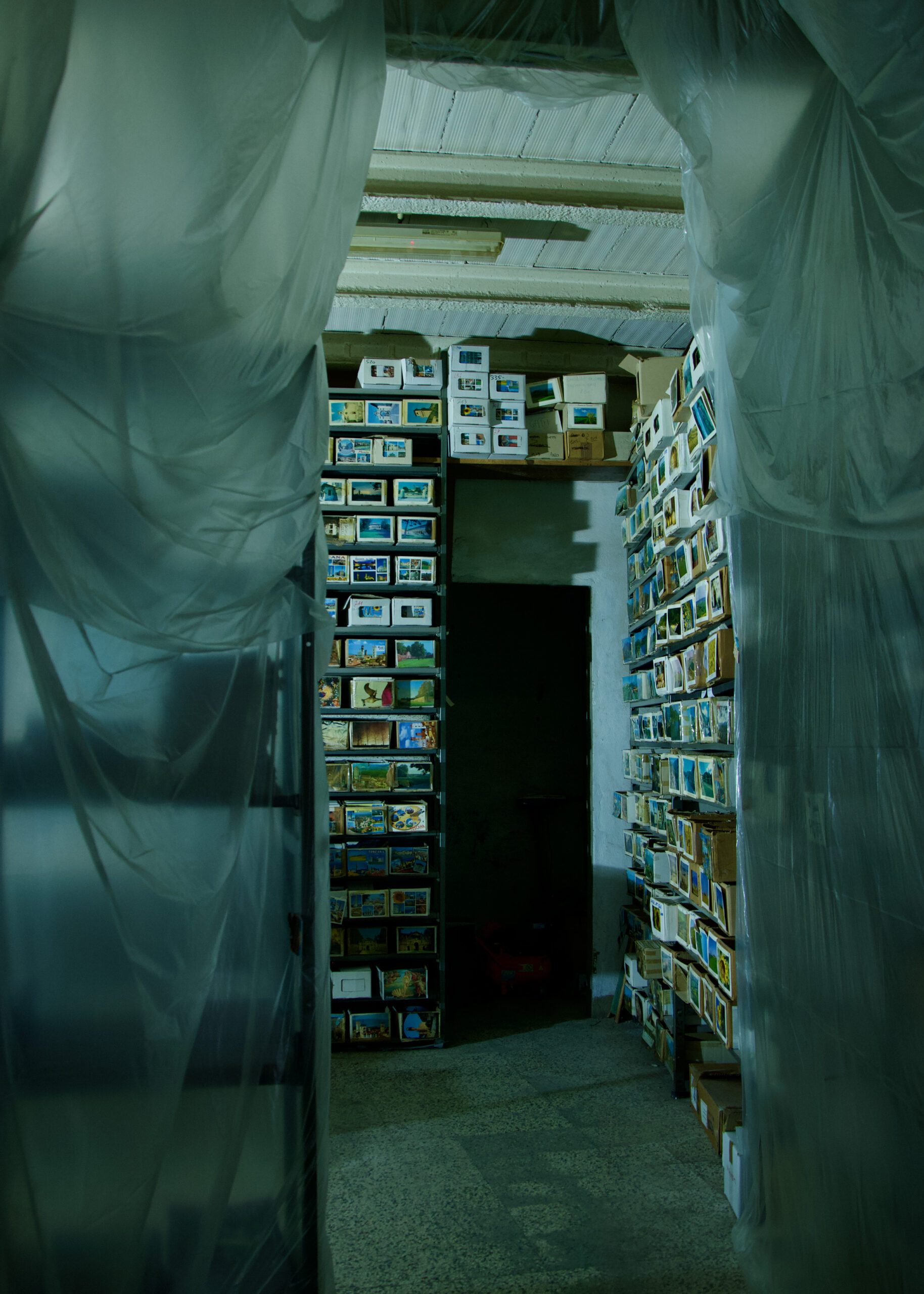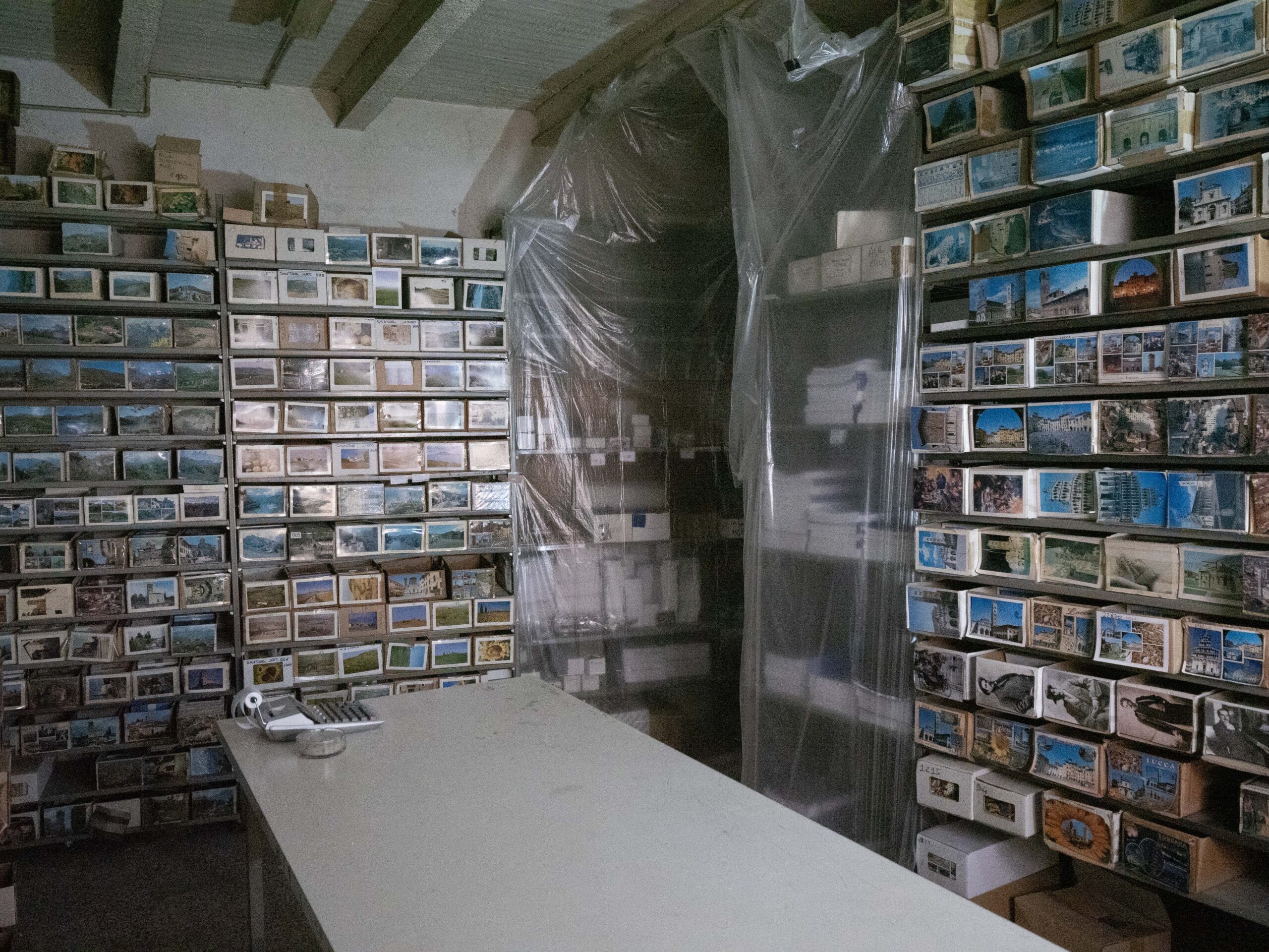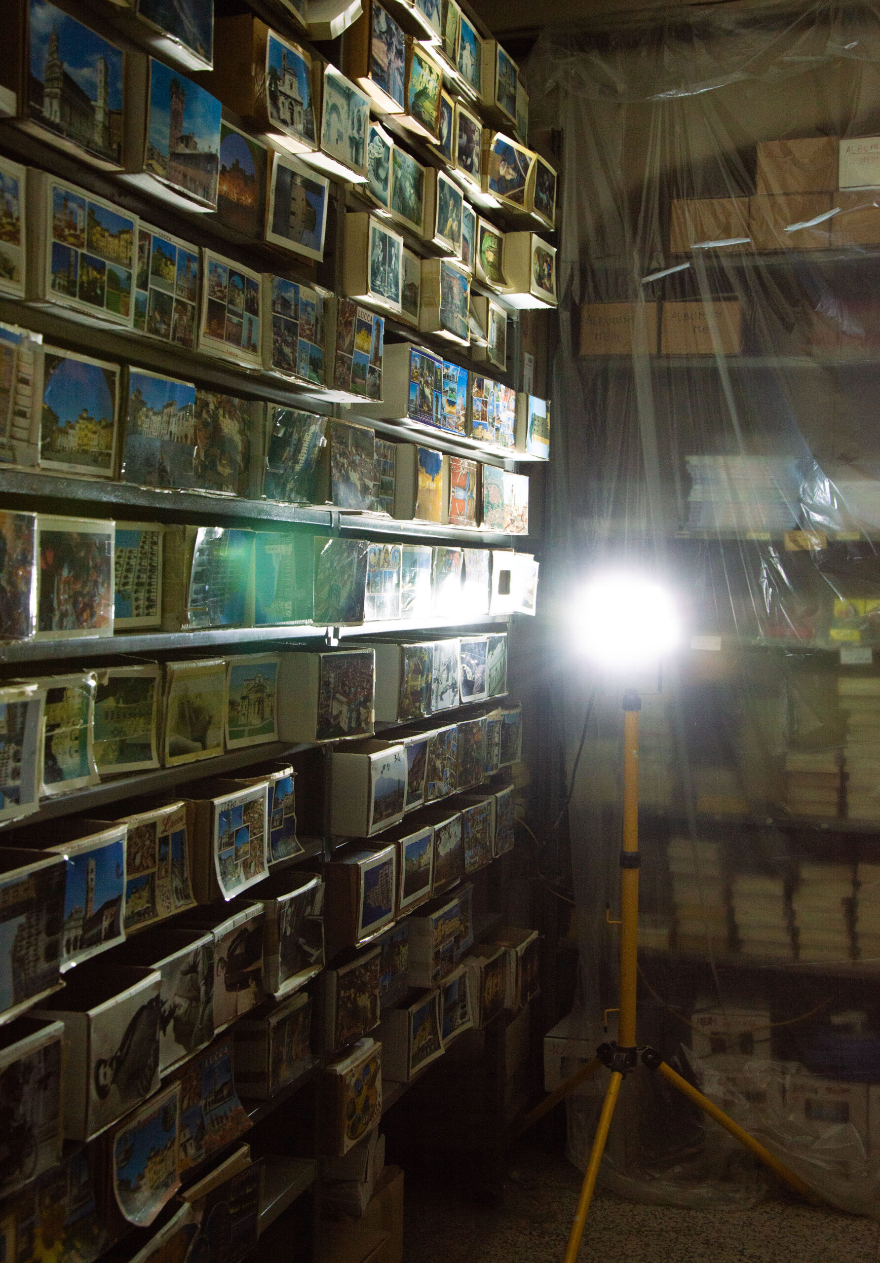 300.000ricordi agisce sullo spazio del magazzino della Santori s.a.s., azienda di famiglia che dagli anni ‘70 vende cartoline e souvenir all’ingrosso. All’interno di questo luogo, in un momento che vede la chiusura dell’attività, il collettivo ciaocasa traccia un intervento site-specific utilizzando esclusivamente i materiali ritrovati all’interno, mettendo in relazione memoria personale e collettiva e archivio, realizzando un racconto di suoni e immagini stratificate e accumulate nei due piani del magazzino.