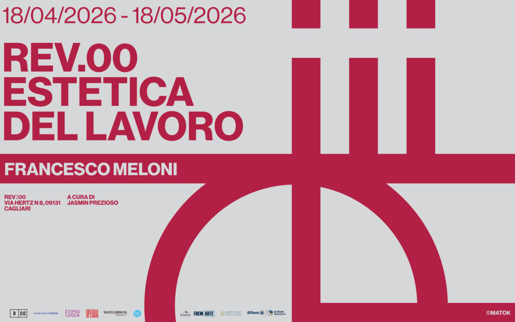 REV.00. Estetica del lavoro REV.00. Estetica del lavoro è la nuova mostra personale di Francesco Meloni, a cura di Jasmin Prezioso, ospitata dal 18 aprile al 18 maggio 2026 negli spazi di Revisione 00, studio di progettazione con sede a Cagliari. Il progetto assume lo studio non come semplice sede espositiva, ma come organismo operativo. […]