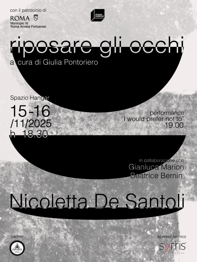 Riposare gli occhi Il progetto espositivo riflette sull’urgenza di opporsi alle dinamiche di iperstimolazione e iperattività proprie della società produttiva e performativa, sperimentando una dimensione di inattività consapevole in un luogo – la struttura scolastica – solitamente associato e dedicato al suo opposto. De Santoli ragiona sulla connotazione politica del non agire, intesa come […]