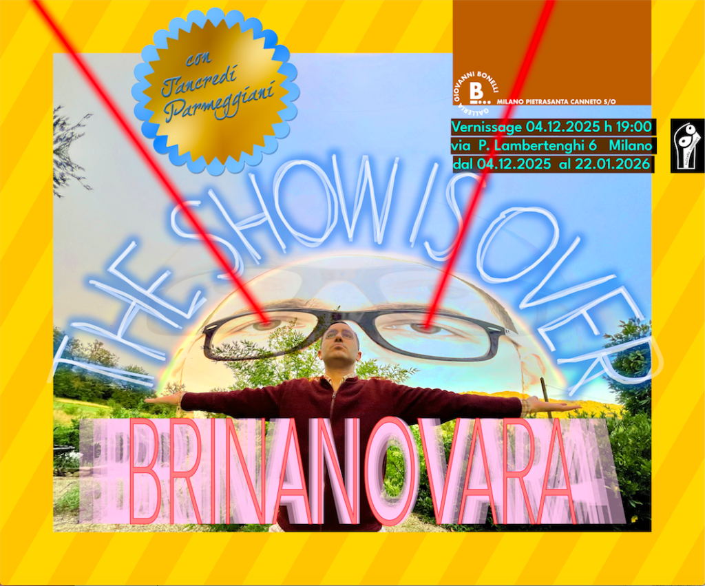 The Show Is Over BRINANOVARA with Tancredi Parmeggiani THE SHOW IS OVER 04.12.2025 – 22.01.2026 What’s done it’s done. It’s too late now. Sincerly, BRINANOVARA During the opening the sound-action by Austero SoundArt takes place, interviewing Tancredi Parmeggiani from his writings. In the room adjacent to the gallery, Stefano Cozzi’s unreleased video Ekphrasis (2025) is […]