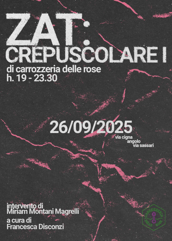 ZatCrepuscolare 1 Carrozzeria delle Rose, inaugura il primo evento dell’edizione di ZatCrepuscolare, con un intervento artistico di Miriam Montani Magrelli a cura di Francesca Disconzi.L’evento sarà fruibile esclusivamente venerdì dalle 19.00 alle 23.30. Carrozzeria delle Rose inaugura il primo evento del progetto dal titolo “ZatCrepuscolare”, ideato per la città di Torino. Progetto che al momento […]