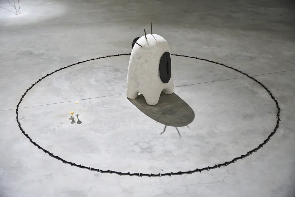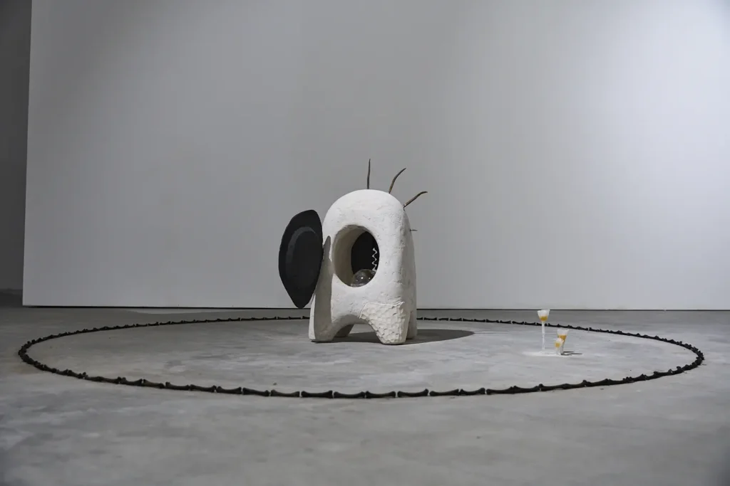 Developed in dialogue with curator Lucia Giardino, the exhibition offers an intimate look not only at the final works, but also at the research materials and experiments that accompanied their development. Charitonidi’s work explores the acoustic communication of marine mammals threatened by noise pollution, through ceramic sculptures inspired by marine fossils from Piedmont that are capable of producing evocative sounds. Tagliabue, on the other hand, reflects on the industrial poultry farming chain, incorporating organic waste materials—bones, eggshells, ashes—into bioceramic works that evoke contemporary relics and rituals.