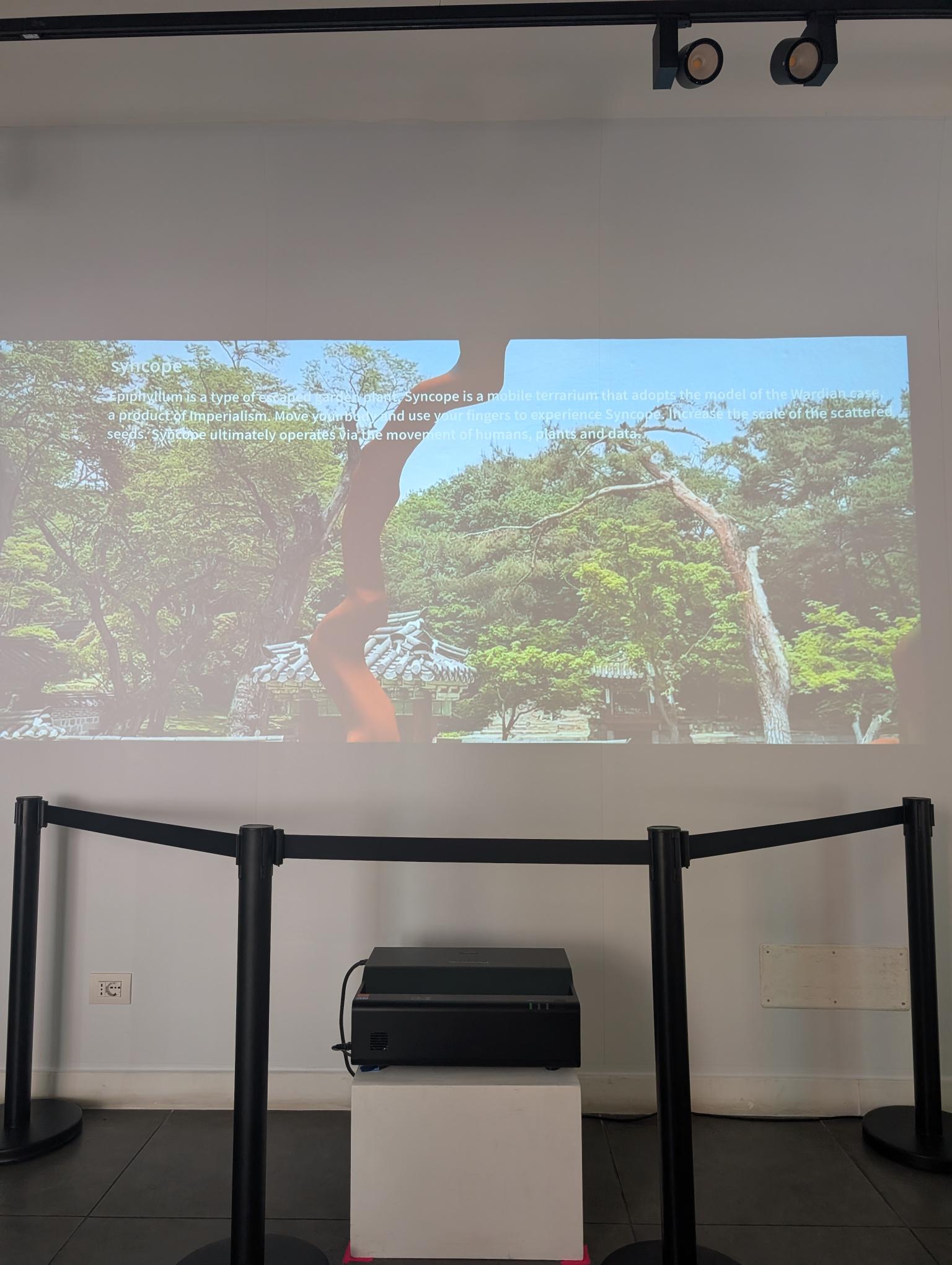 The same artist presents her new work on the lower floor: Borrowed Landscapes (2025) draws inspiration from the Korean practice of chagyeong. The applied principle—also used in the famous Secret Garden of Changdeokgung—follows the idea of “hidden design”: architecture is present, but never overpowers nature. This technique is a fundamental principle of Korean garden architecture and consists of designing architectural spaces in such a way as to “frame” the external landscape—mountains, trees, sky, gardens—so that it becomes part of the interior. From this perspective, architecture does not dominate nature, but visually intertwines with it.