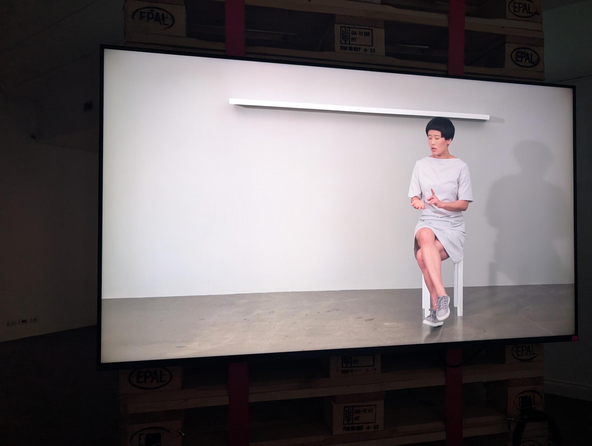 Sit (2015), Min Oh, “Still/Moving Korean Video Art Based on Performances” exhibition view, Korean Cultural Center in Italy, ph Dobroslawa Nowak, courtesy the artists and Istituto Culturale Coreano in Italia