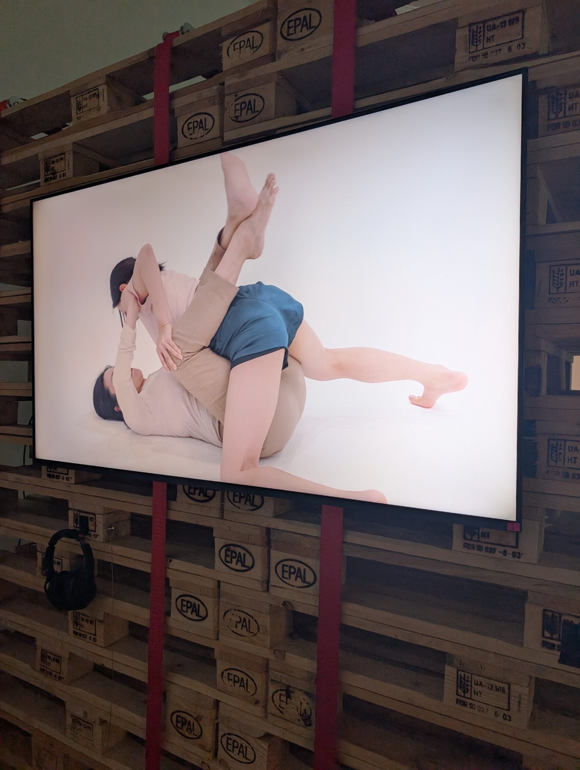I Will Love Your Pure Feet on Thursday (2023), Young-jun Tak, “Still/Moving Korean Video Art Based on Performances” exhibition view, Korean Cultural Center in Italy, ph Dobroslawa Nowak, courtesy the artists and Istituto Culturale Coreano in Italia