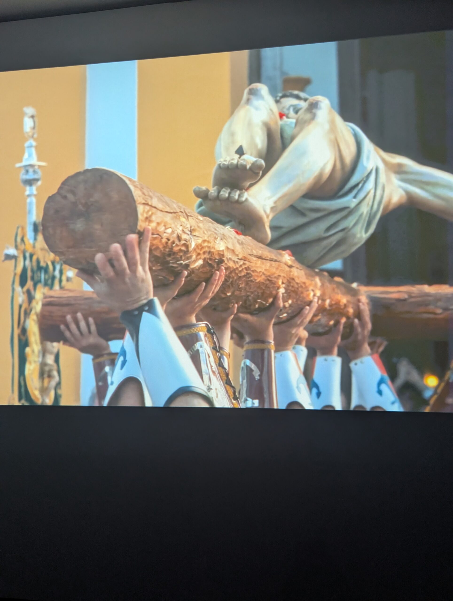 With similar care and sensitivity, the body is treated in the video by artist Young-jun Tak, titled I Will Love Your Pure Feet on Thursday (2023). The video, accompanied by Manon Balet’s musical track, juxtaposes the Holy Thursday procession in Andalusia—linked to the ritual of foot washing during the Easter period—with a classical dance choreography performed by dancers in an isolated location at the edge of the forest.