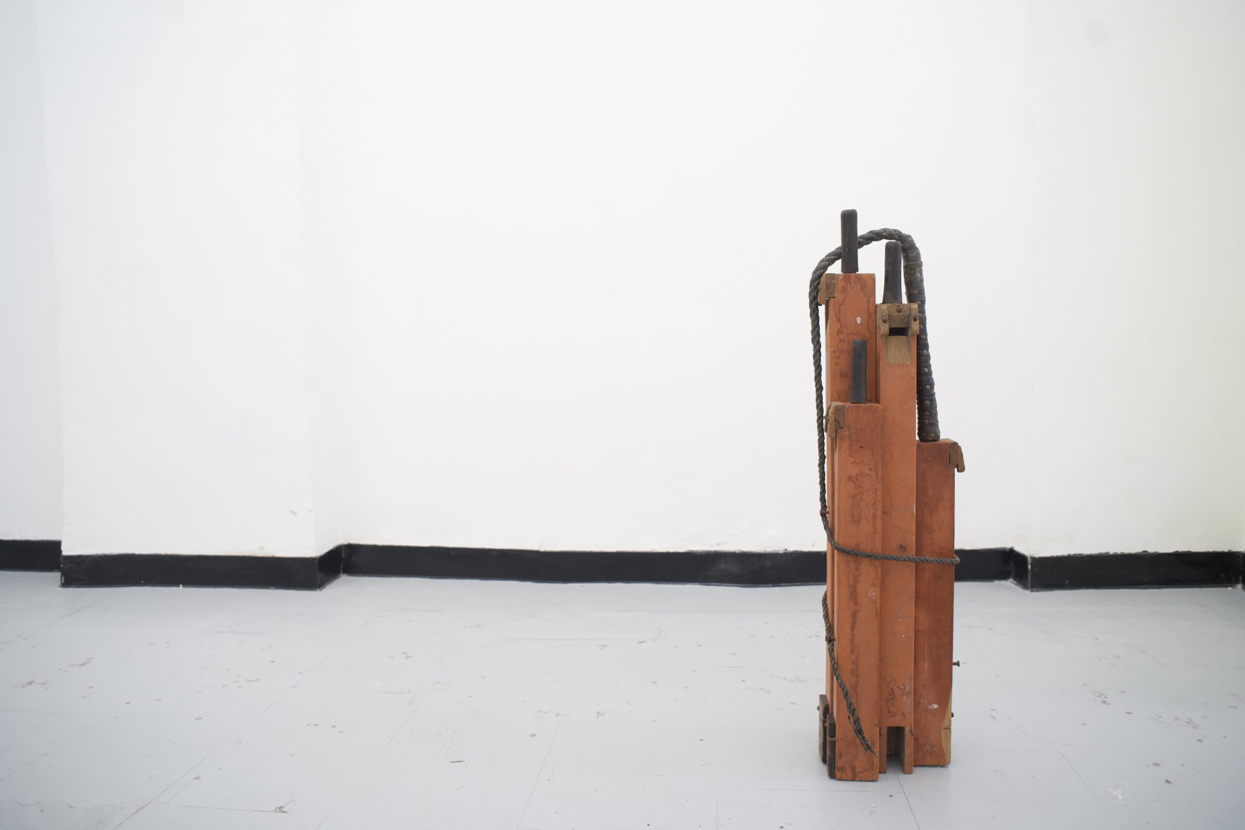 Foot drop is a solo exhibition by Marco-Augusto Basso (1995), a project that brings together a series of sculptures conceived as an investigation into the physical, symbolic, and emotional relationships that exist between heterogeneous objects and situations. In this new production, the artist investigates the possible material behavior of things—their ability to evoke, resist, collide, support, and contradict each other—exploiting formal tension to hypothesize their dynamics and relationships.