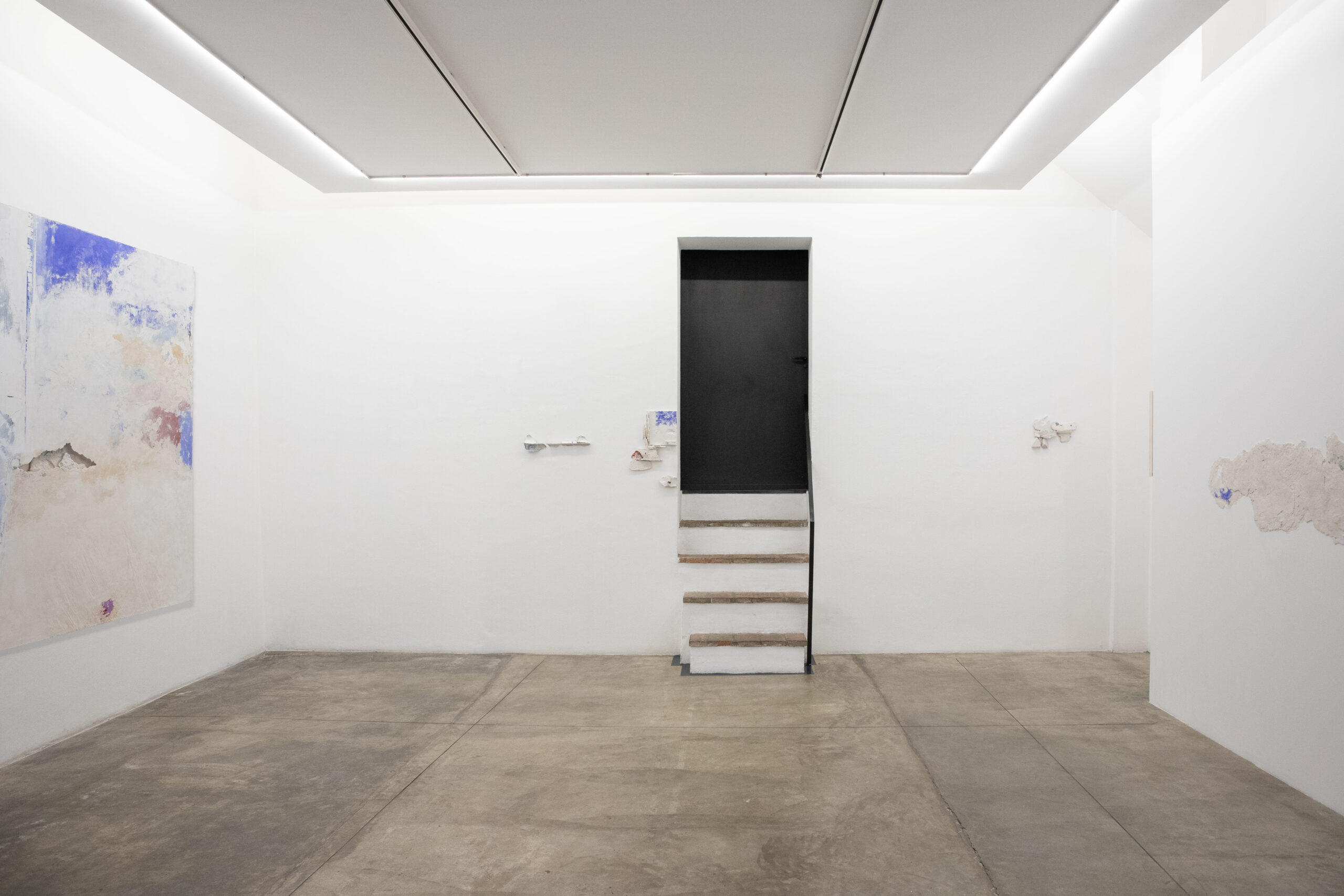Il progetto si articola attraverso interventi inediti e in stretta relazione con la grande tavola concepita per gli spazi della galleria. Quadro e parete, immagine e spazio, producono una dimensione in cui la pittura si estende e si ridefinisce.