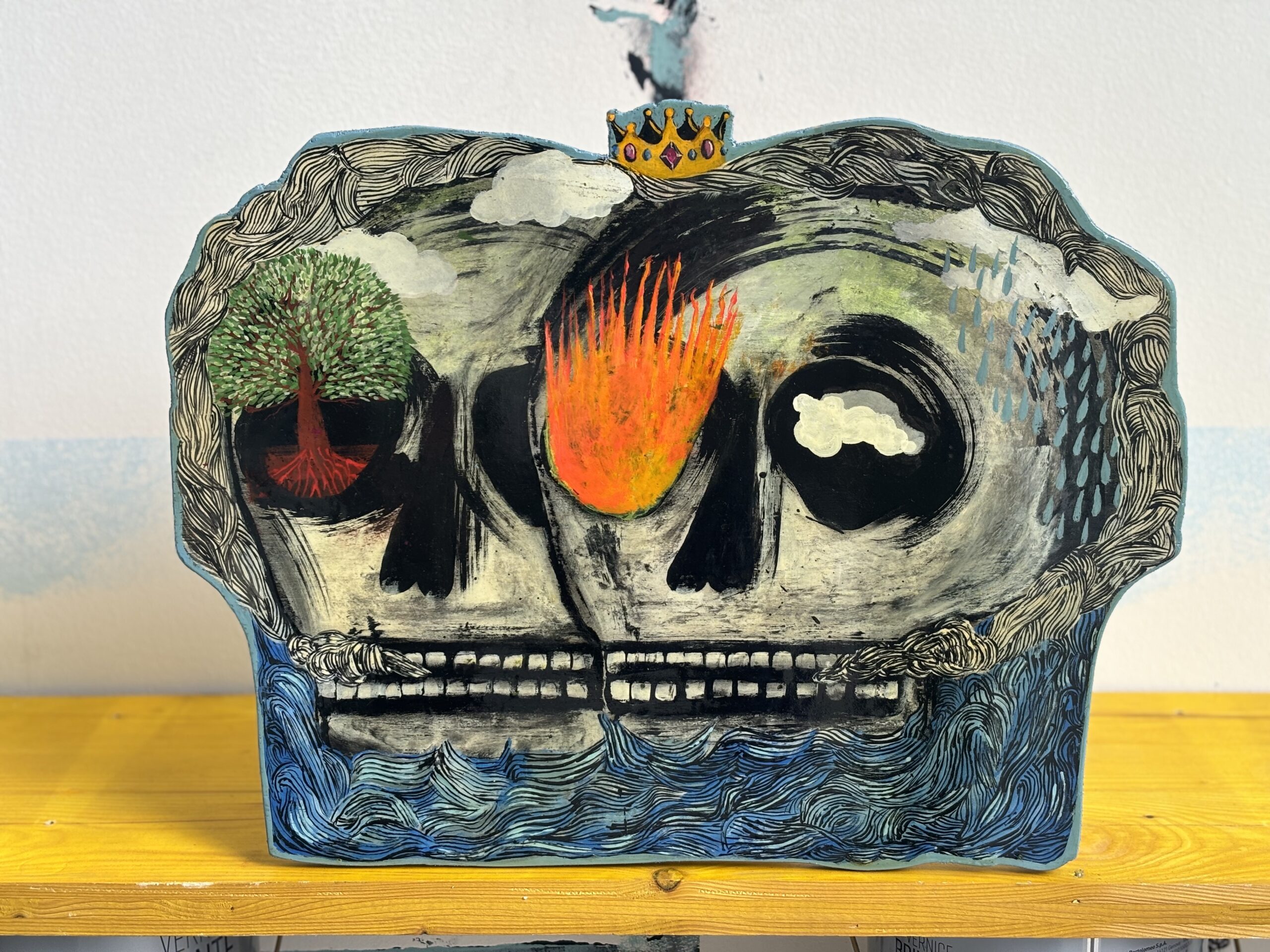 Il portachiavi infilato nella serratura della porta dello spazio espositivo, si presenta come un vero e proprio âgrappoloâ di oggetti dalle piĂš svariate forme: si notano chiavi spezzate – ricordi di traslochi – , chiavi da ladro comprate su eBay, numerosi portachiavi in metallo smaltato acquistati nei negozietti turistici che trapuntano a ritmo battente la cittĂ di Venezia; uno fra tutti è la silhouette di una Vespa marchiata VENEZIA, cittĂ la cui particolare urbanistica non consente il transito su mezzi motorizzati a due o a quattro ruote. Ma al di lĂ delIâestetica kitsch tipica del souvenir di bassa qualitĂ , che mescola arbitrariamente stereotipi legati alla cultura italiana dando vita a veri e propri nonsense, lâattenzione di Antonini è quasi tutta focalizzata sulla dimensione materialistica che emerge in questi oggetti, ossia il loro essere prodotti industriali creati in serie, adatti – e adattabili – ad ogni cittĂ che vive di turismo.