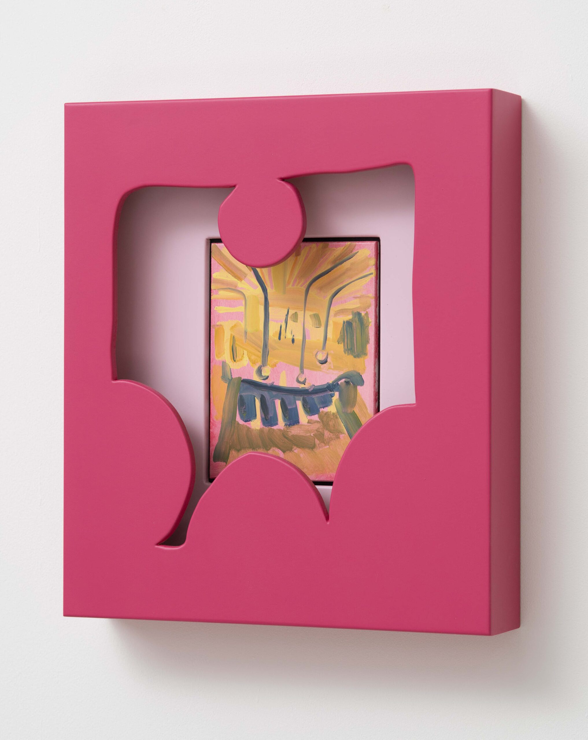 La ricerca di Ian J Brown prende forma a partire da una rilettura in chiave contemporanea dei Teatrini di Lucio Fontana, attraverso l’impiego di cornici sagomate che accentuano la profondità spaziale e attivano un dialogo dinamico tra pittura, scultura e architettura. Queste soglie diventano dispositivi visivi capaci di trasformare la superficie pittorica in un palcoscenico in cui si intrecciano dimensioni interiori ed esteriori, psicologiche e sociali.