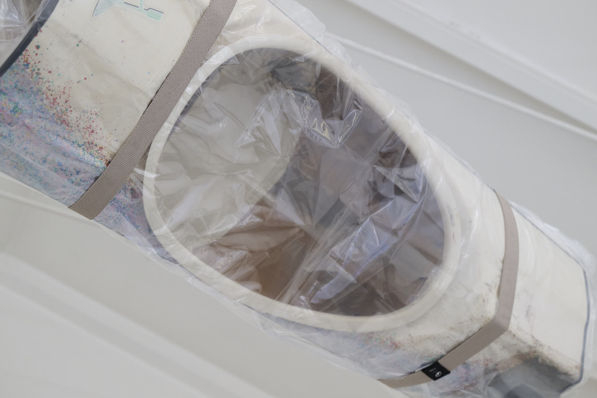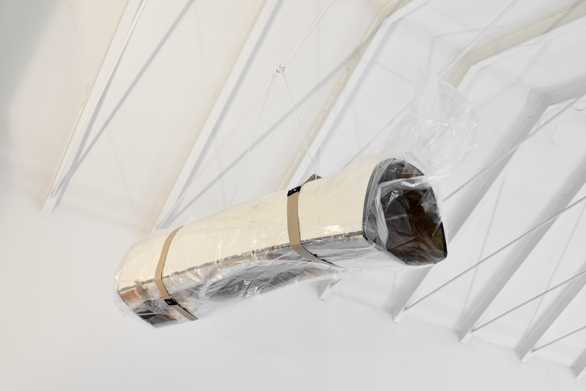 The work Boof concludes the exhibition with an image of suspended finality. An object originally designed for movement and exploration is sectioned and immobilised through a domestic gesture of preservation. Vacuum sealing does not destroy but neutralises. What once allowed one to “navigate” one’s identity is archived as residue, protected yet simultaneously rendered inert. Leisure time, rather than a space of reinvention, becomes a repository of frozen possibilities.
