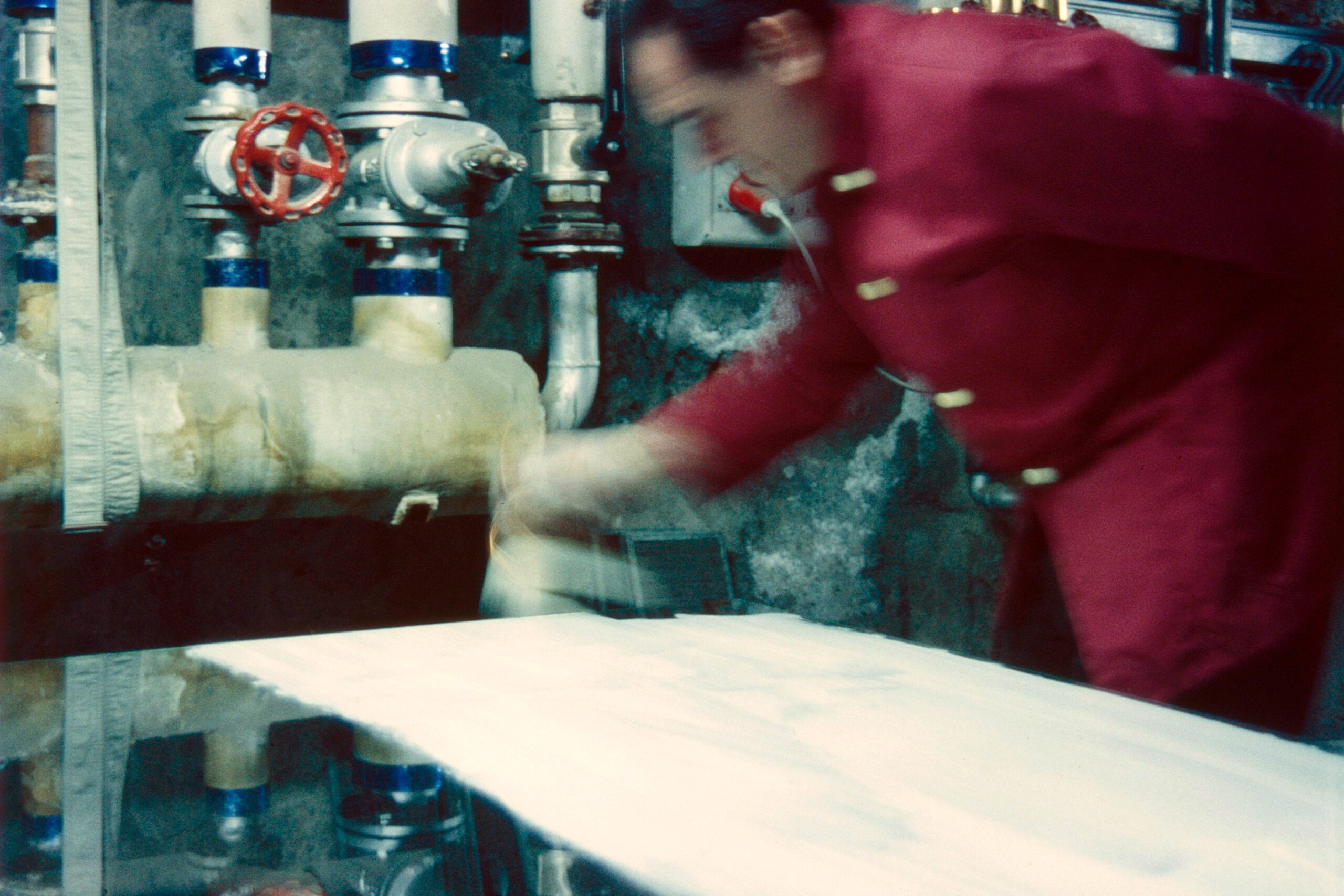 “Opera per camera da letto: dedicato a chi dorme” [Bedroom work: dedicated to those who sleep] (1995) represents a transformative moment, a crucial turning point in Garutti’s path toward public art and a new reading of the dynamic relationship between artwork and viewer that would shape his artistic life. In the small room of the Palace Hotel, the artist stages a physical metaphor for an encounter by installing a simple pane of glass, painted on the reverse with phosphorescent paint. “Intimate and secretive, the encounter between the work and the viewer takes place at night. The work is ambiguous and transient. It appears in an icy glow at the crossing point between wakefulness and sleep. It is only visible to those who spend the night there. In the hotel room – which is both a public and domestic place at the same time – the work becomes a metaphor for art itself. This work […] is for me a manifesto of intent.” [Alberto Garutti, “Spectator,” in Studio Celant (ed.), Alberto Garutti (Milan / Berlin: a+mbookstore / Hatje Cantz] With the Bologna project in the early 1990s, Garutti began to place, with renewed awareness, the critical responsibility of the viewer’s gaze at the center of his work – a theme that would later take shape in two other series also present in the exhibition at C+N Gallery CANEPANERI: the caption-artwork “Opera dedicata a chi ora alza gli occhi e guarda” [Work dedicated to those who, now, rise their gaze and look] (2015–2016), and above all “Che cosa succede nelle stanze quando le persone se ne vanno?” [What happens in rooms when the people have left?] (2001–2023), a work in which phosphorescent paint – used for the first time in “Italian Territory” – begins to cover various fragments of domesticity: tables, chairs, vases, objects. Garutti recounts: “The public will only see them as ordinary items of furniture. I wanted to alter the public’s perception of the work: it can only be imagined, thought of, awaited. It is in this immaterial tension that the work is disclosed, fulfilled only in the meeting with its spectators, who are asked to make a patient effort to look for it.” [Alberto Garutti in an interview with Hans Ulrich Obrist, in Domus, no. 901 (March 2007)]