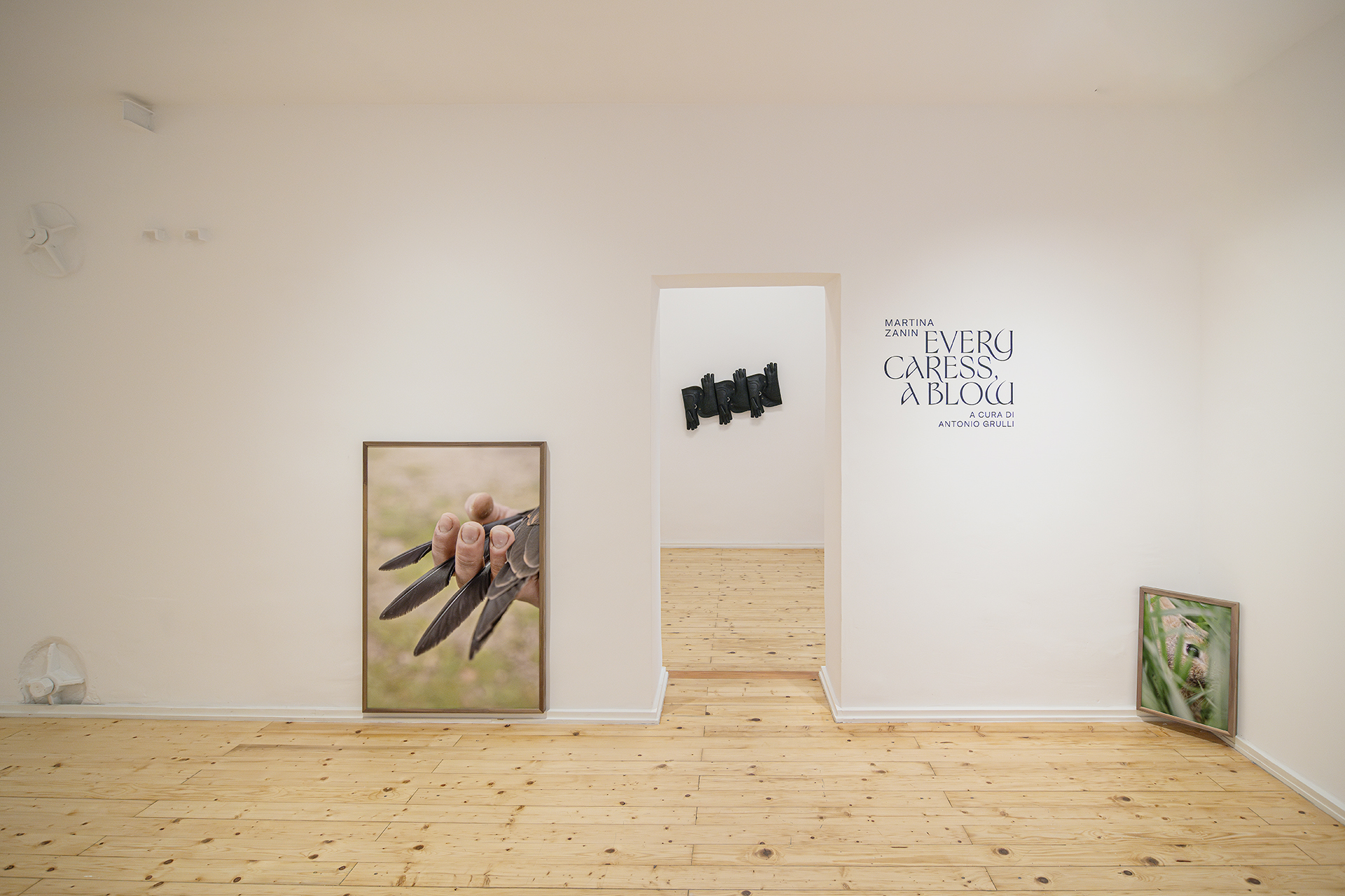 Through sculptures, photographs, and installations, Every Caress, a Blow stages the inner tension arising from personal experience, situated at the intersection of psychology, ethology, and spirituality. The exhibition investigates how body and identity are shaped through affective dynamics of power and protection, which bind the subject indissolubly to those who care for them. Antonio Grulli, the curator of the exhibition, refers to the different dimensions of the skin—material, aesthetic, and even philosophical: “Our epidermis is probably the first sensory organ through which we adhere to the world. We experience our skin as the surface upon which our history is deposited, a surface on which only pain leaves visible traces. […] It is the space of the intimate that remains, paradoxically, the most exposed organ.”³