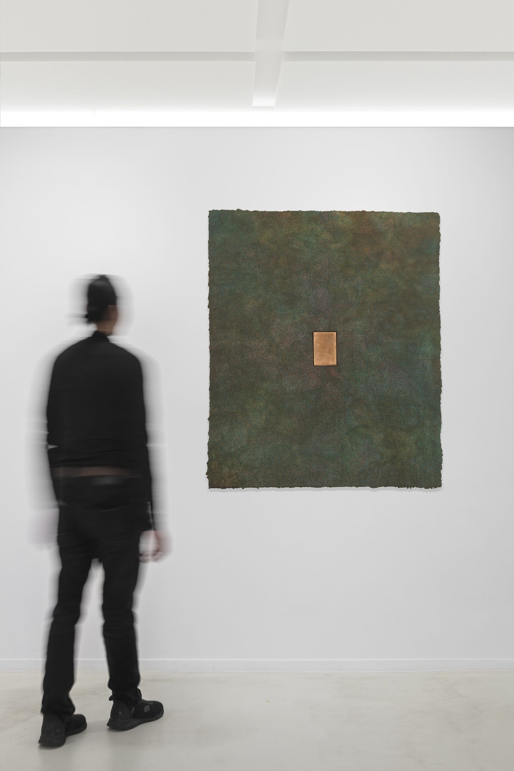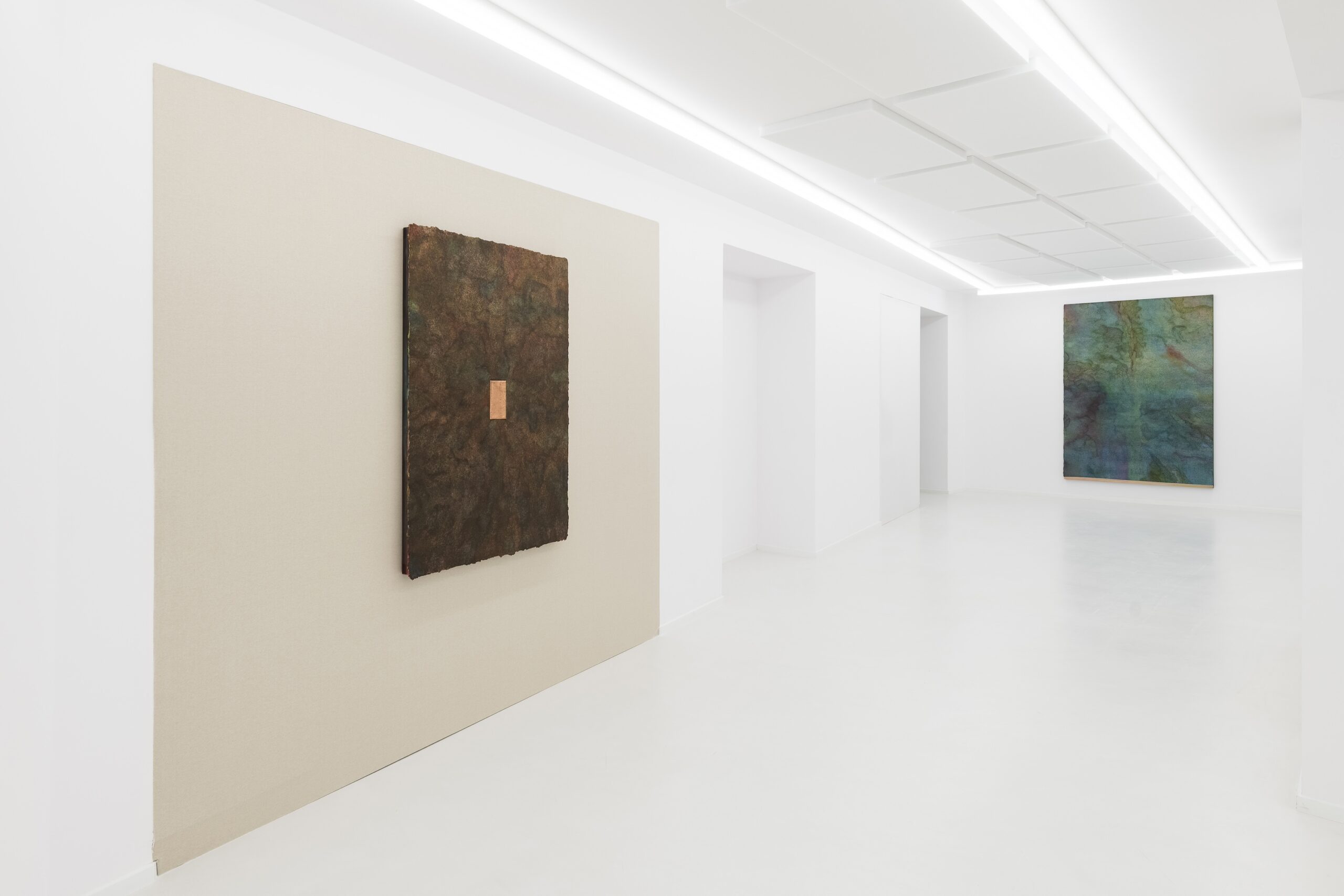 L’esposizione si articola ridefinendo gli ambienti della Fondazione creando ulteriori spazi organizzati secondo una logica sensibile dettata dalle opere. Per esempio, una sala sarà dedicata ai lavori su carta, che si articolano quasi come partiture musicali o appunti concettuali. Ogni area è concepita come un “momento” in cui l’immagine muta nel tempo stesso della sua contemplazione. In questo contesto la pittura non è soltanto un linguaggio, ma un luogo ontologico di relazione tra l’immaterialità e lo spazio in cui le opere “agiscono”.