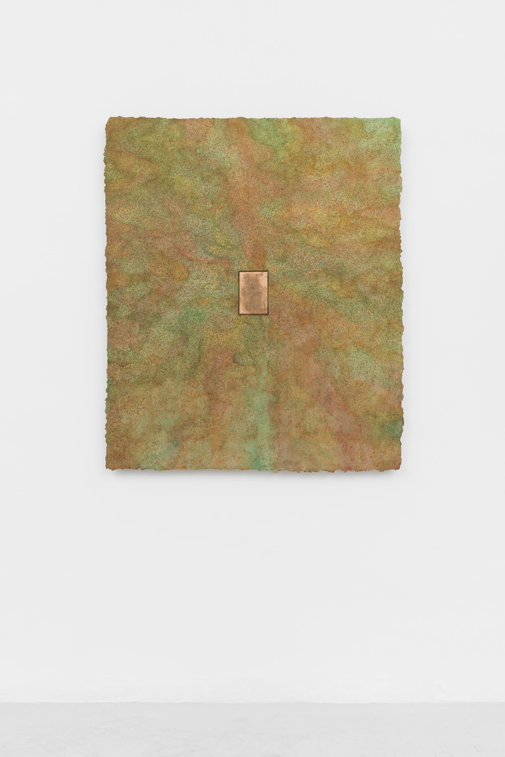 Una parte cruciale del progetto espositivo, come del lavoro di Schillaci, è dedicata alla riflessione sull’atto generativo dell’opera: il momento incerto in cui un’immagine comincia a emergere, prima ancora di essere riconoscibile. Quando nasce un’opera? Nel gesto? Nell’errore? Nell’idea? Nella metamorfosi? Queste domande sono tra i motori di una serie di “dipinti in bronzo”, su cui l’artista lavora dal 2021. Si tratta di opere ottenute tramite calchi realizzati su quadri stratificati e poi distrutti. Il quadro originario scompare, ma sopravvive in una nuova forma: una superficie solida, opaca, “altra”, che conserva i resti del gesto pittorico congelati nel metallo. Questi lavori attivano un cortocircuito tra superficie e memoria, permanenza e cancellazione, deviando l’opera verso una dimensione al confine tra pittura, scultura e oggetto.