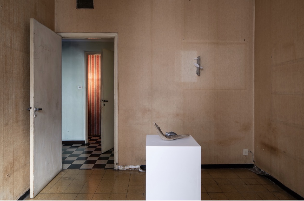 The project brings together artists, photographers, connoisseurs, and amateurs through a journey that unfolds within an uninhabited apartment in the heart of Milan, dating back to the first half of the twentieth century. A space that still bears the marks of its former inhabitants, it now exists in a state of suspension, on the threshold of an imminent renovation. Traces of old books and large wooden furniture remain on the walls; the wallpaper retains the imprints of paintings and mirrors.