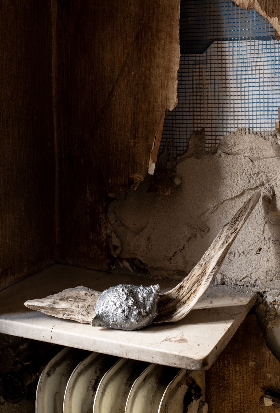 The apartment is devoid of furnishings, aside from a few antique wrought-iron chandeliers interspersed with more recent plastic elements. Emptied boudoirs, rusted nails, disused systems, and long suspended electrical cables all attest to a transformation in progress. RDV n. 2 unfolds at a precise moment, suspended between a past that has not entirely vanished and a future yet to begin. To capture this transitional state, the curators invited Andrea Gilberti to photograph the space and interpret their vision. The resulting body of work conveys the apartment’s spectral atmosphere, its dusty light, and the secrets it holds. The project continues with an installation of artworks engaging with ideas of transition and displacement. Luca Campestri presents images that we would not ordinarily encounter, were it not for the artist’s intrusion into nocturnal settings and his photographic rendering of a state in flux. Valerio Di Fiore’s sculptures appear as living organisms attached to the walls, as though they had long been present and were resisting transformation. Deborah Graziano intervenes with anthropomorphic forms that remain partially undefined, suspended in a process of transformation and a constant temporal tension. RDV n. 2 unfolds through a series of invitation-only visits, conceived as moments of encounter and exchange. An editorial publication will bring together texts and photographs documenting the site’s initial condition, the installation of the artworks, and the visits that animated the project.