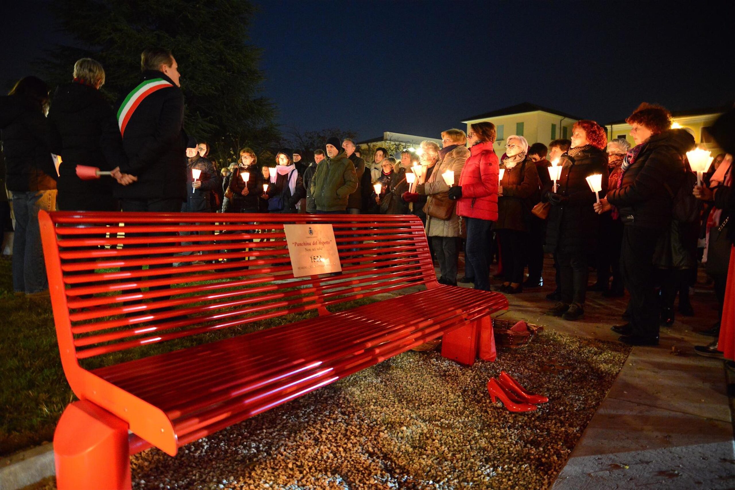 In Veneto, gli artigiani e artisti della città di Nove esporranno le scarpette rosse in ceramica in un luogo del centro storico dove è stata installata permanentemente una panchina rossa. Il 25 novembre, al termine della tradizionale fiaccolata, verrà inoltre presentata l’opera collettiva “Musiva”, un grande mosaico composto da cocci in ceramica realizzato in collaborazione con lo sportello antiviolenza “Spazio Donna” e l’Associazione “Questa Città”.