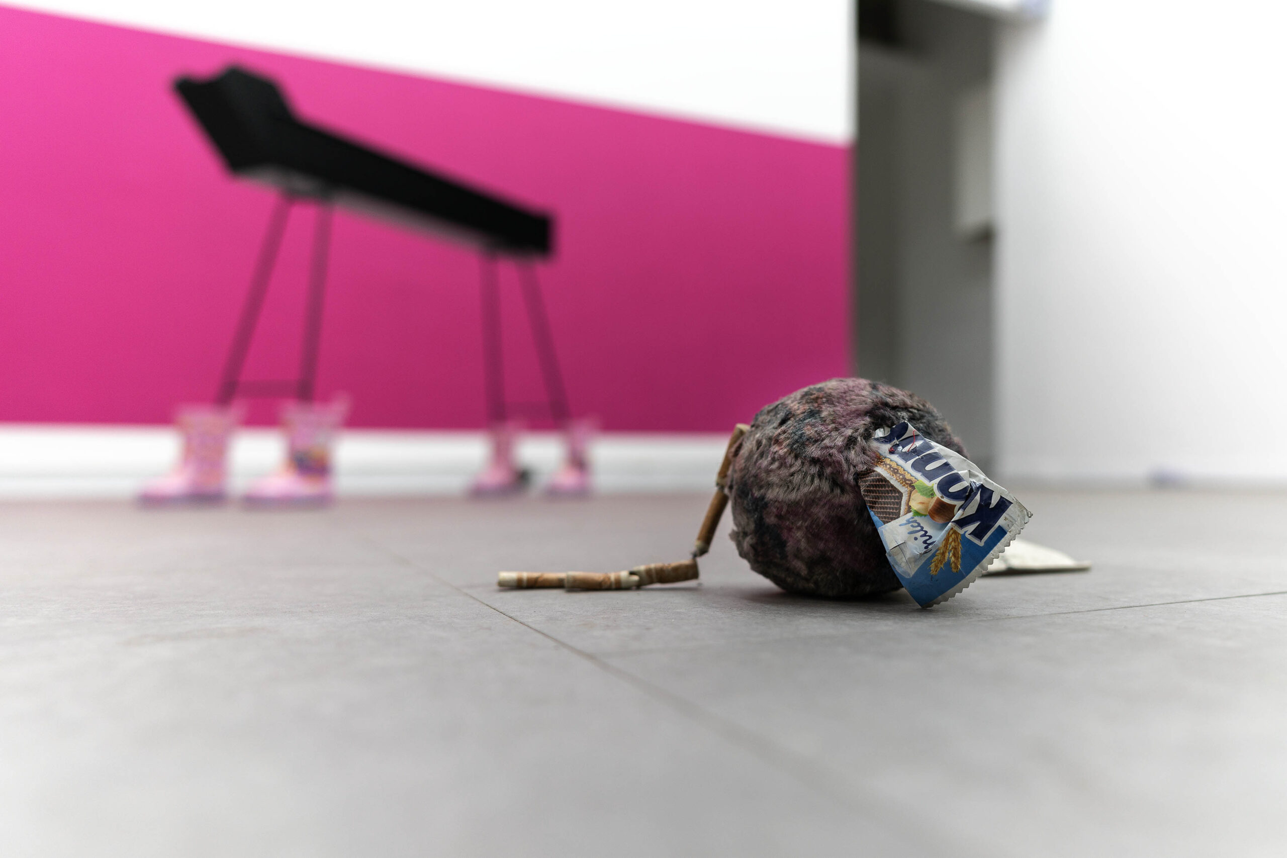 In this context, which connects independent realities and museum institutions, In Situ commissions the cat AnnaKarina as curator, introducing an additional point of view into the dialogue between artist, space, and institution. The project was born from the need to rethink the curatorial gesture, shifting it from a rational and rhetorical level to a perceptive and intuitive one. The idea of entrusting the selection of works to a real cat introduces a non-anthropocentric dimension to the construction of the exhibition, questioning the mechanisms of choice, judgment, and sensitivity inherent in the contemporary art system. The figure of the cat is intended as an ironic element but also as an alternative curatorial entity: an observer with different parameters of attention and selection. The exhibition is constructed around its behavior, its mechanisms of attraction, its movements in space, generating a short circuit of roles between animal and human, curator and artist. The latter is therefore a guest in a space that has the special perspective of the animal. It is through the cat’s point of view that the exhibition is conceived. The cat – both domestic and digital presence, cute and grumpy creature, meme image and icon of the internet, it takes on a central role within the exhibition, influencing both its form and the visitor experience. The choice of artists was the result of interaction between the In Situ team and the cat itself, in a role-playing game that deliberately plays with established hierarchies. The works on display also share a particular relationship with space, activating new perspectives and acting on the gaze itself. The curatorial process becomes visible material in the exhibition, emphasizing the curatorial intervention as an essential part of the project presented.