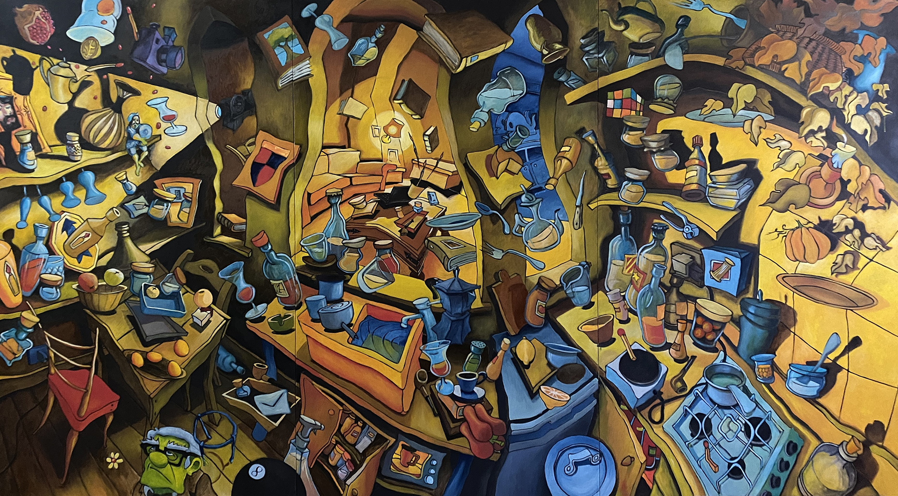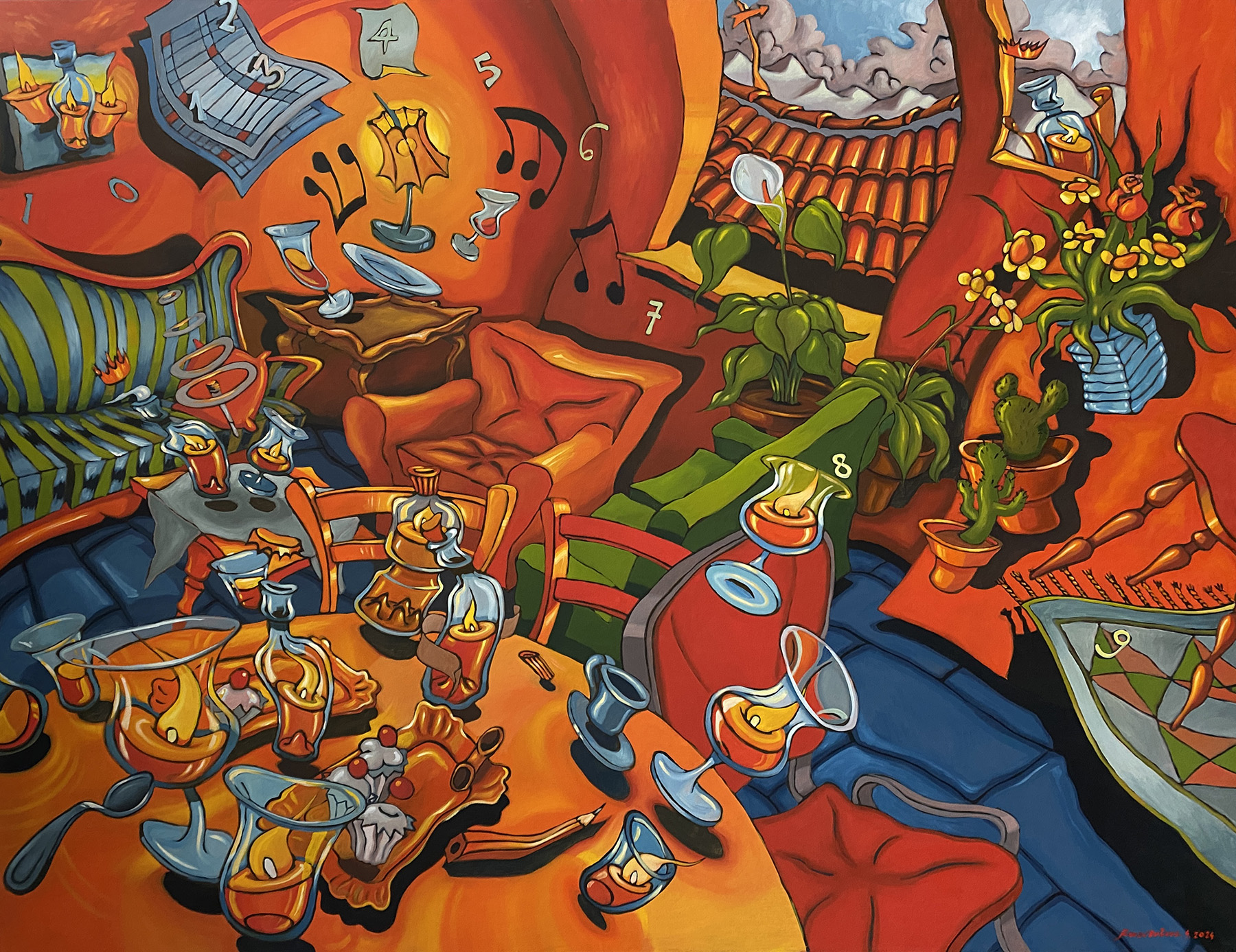 L’artista vibonese ha costruito un immaginario iconografico unico nel panorama dell’arte contemporanea, capace di distinguersi e rendersi da subito riconoscibile. La sua identità pittorica è determinata dagli elementi chiave che caratterizzano le sue opere, dagli oggetti domestici protagonisti delle opere, dalle prospettive distorte, come se gli ambienti fossero immersi all’interno di un fluido, e i colori a contrasto. Vi è poi una componente magica e favolistica che amalgama il tutto rendendo l’opera un mondo alternativo, nel quale le fantasie del bambino diventano il punto di vista dell’artista che ha saputo coltivare l’innocenza e il gioco anche in età adulta.