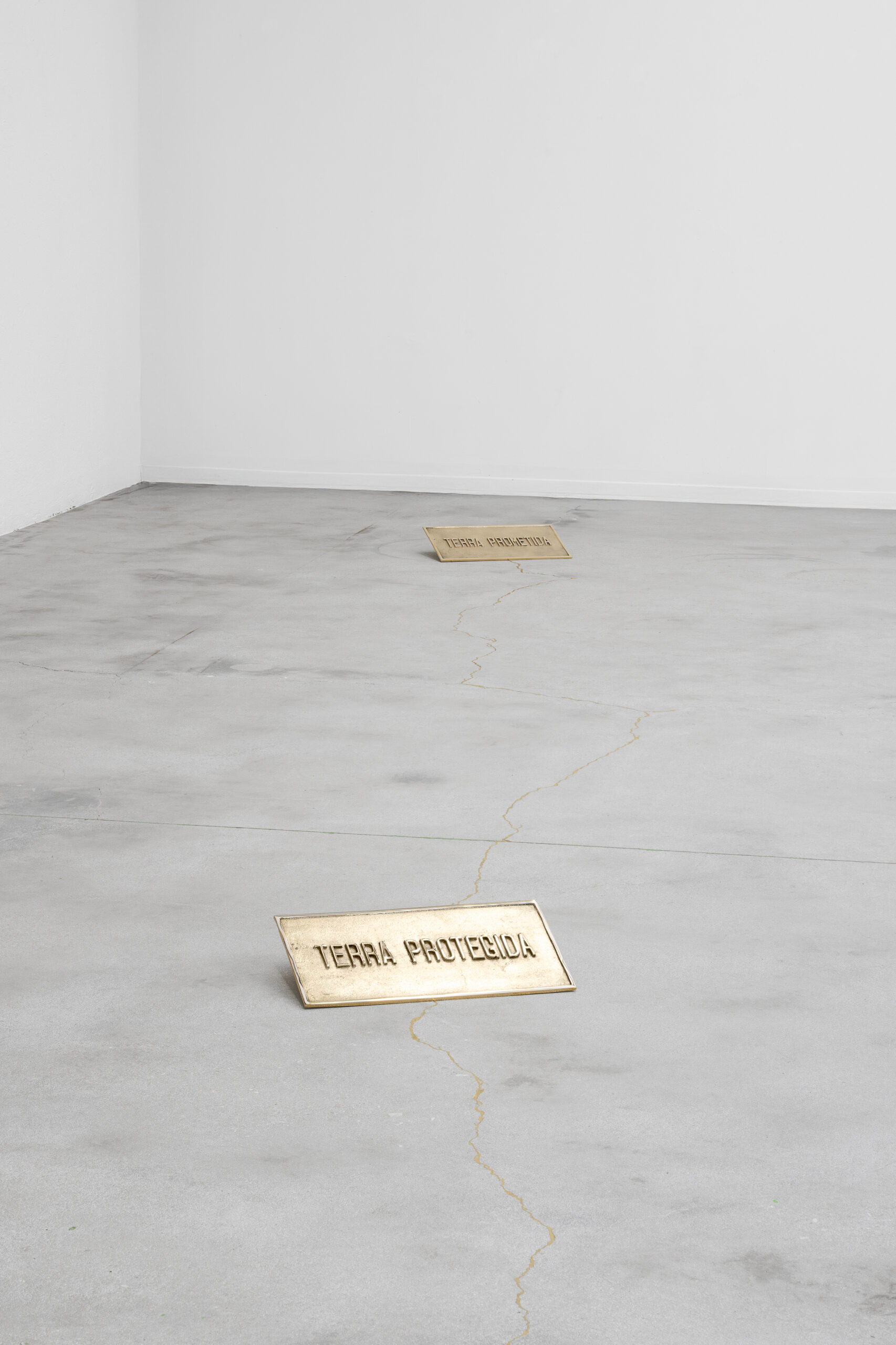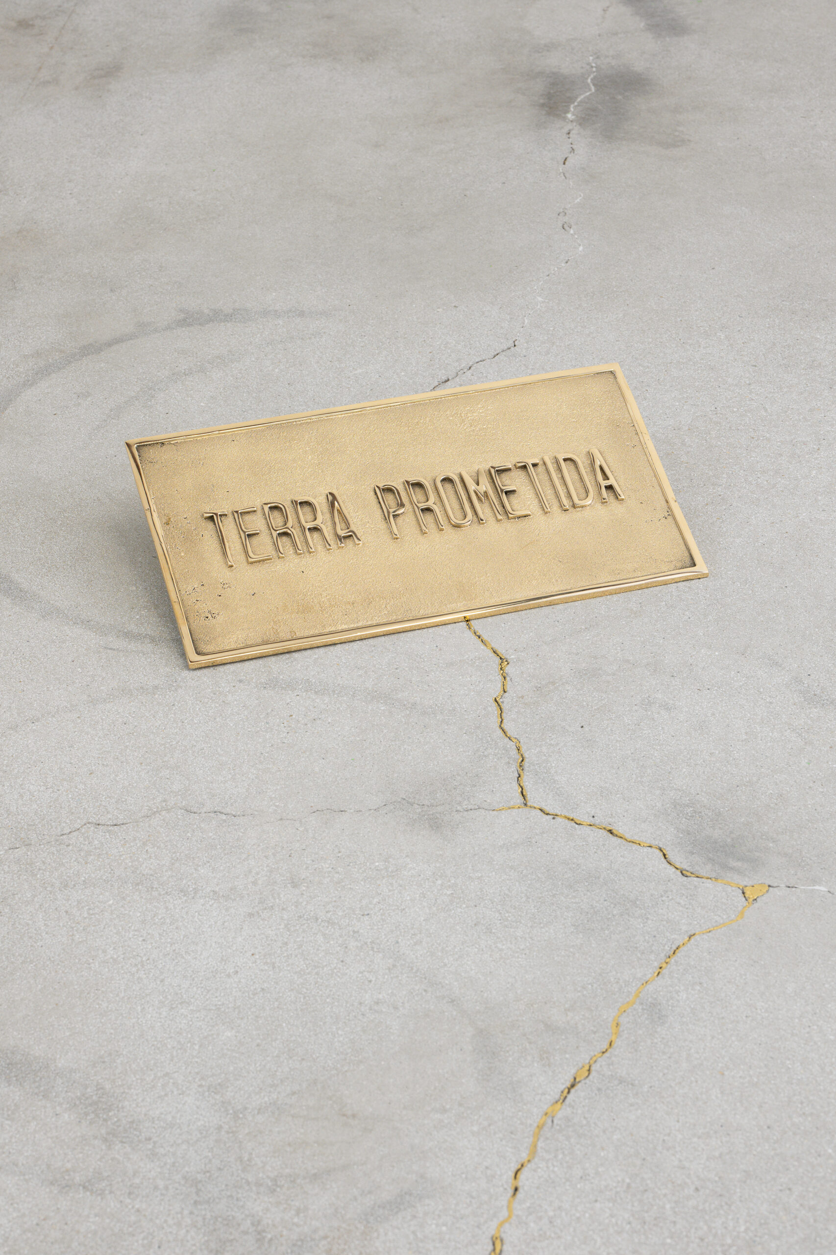 At the Earth’s core, currents of magma slowly shift the magnetic pole, reconfiguring the planet. “Terra protegida, terra prometida”, Ivan Grilo’s solo exhibition, emerges from this invisible force – a molten nucleus generating new orders – to reflect on the friction between future and present, between what is projected and what is preserved. Bronze castings erupt into the exhibition space as textual traces of this subterranean energy, while a video work unveils the metal-casting process, reminding us that every sculpture is also a geological movement.