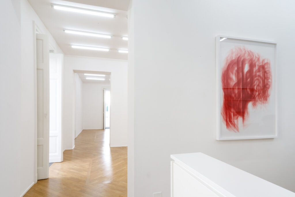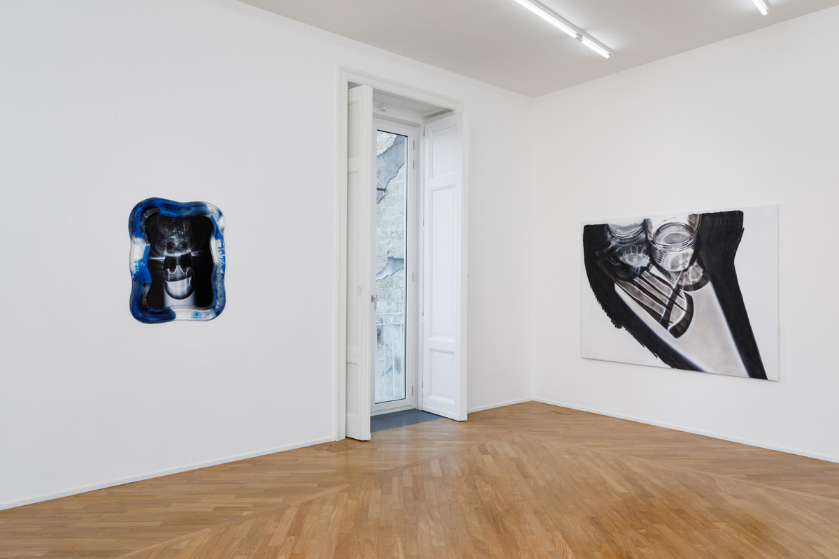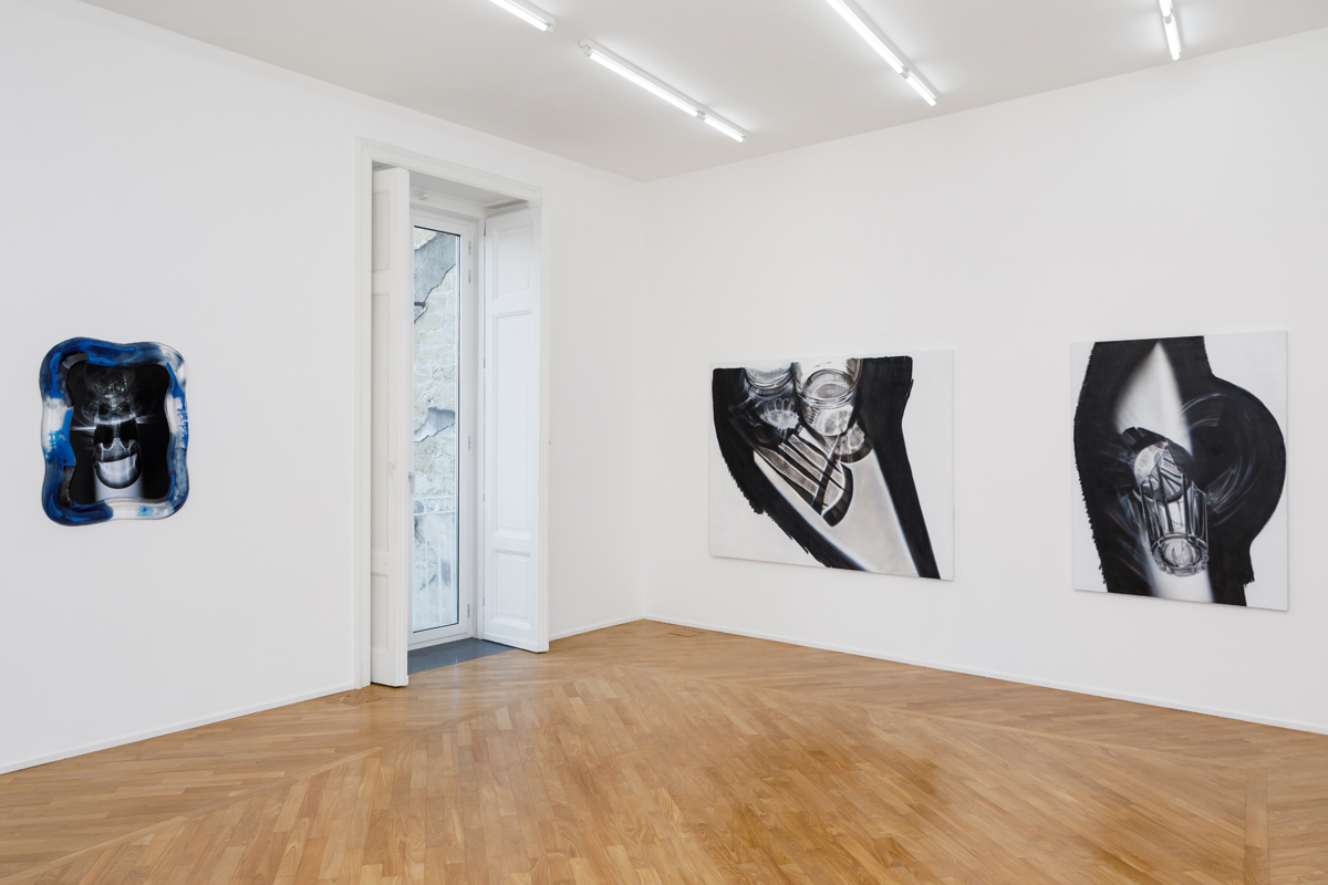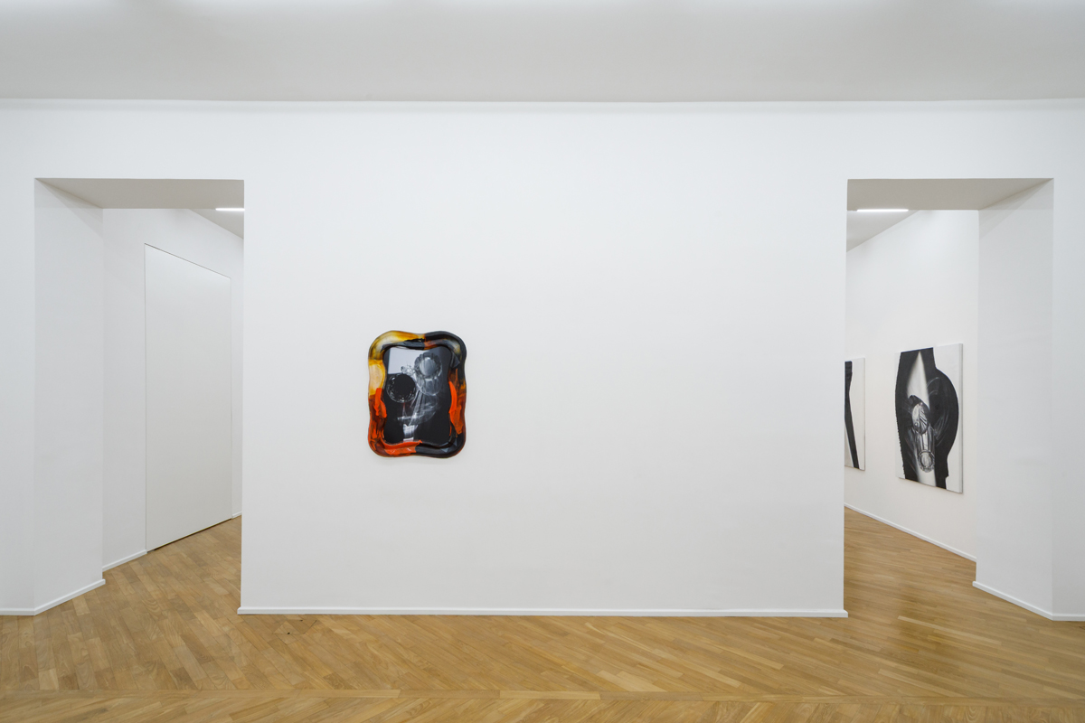 The exhibition presents a new body of work, produced entirely in Naples, arising from the observation of sunlight and the way its rays, passing through everyday glass objects, become distorted as they project onto a horizontal surface. Within this set of accidental refractions, a dual intention of translating the real image takes shape. On the one hand, photographs with glass-paste frames, where a crystallized nature surrounds the photographed caustics of light, held in the instant of their appearance. On the other, in the large paintings made with airbrush, charcoal, and chalk, fields of shadow on a white ground circumscribe the suggestions of light, which emerge as vaporized forms, cuts, or contours.