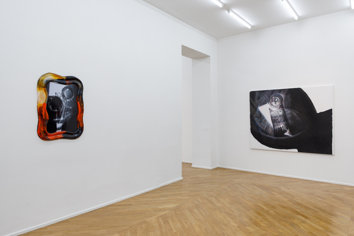 The two series function as parallel physics of the same visual information. Glass, from a liquid state, crystallizes into a form that retains a latent tension and, thanks to its transparency and chromatic variations, allows glimpses of the dynamics of its viscous state. Airbrush painting, usually precise, settles in thin layers, generating blurs and vibrations.