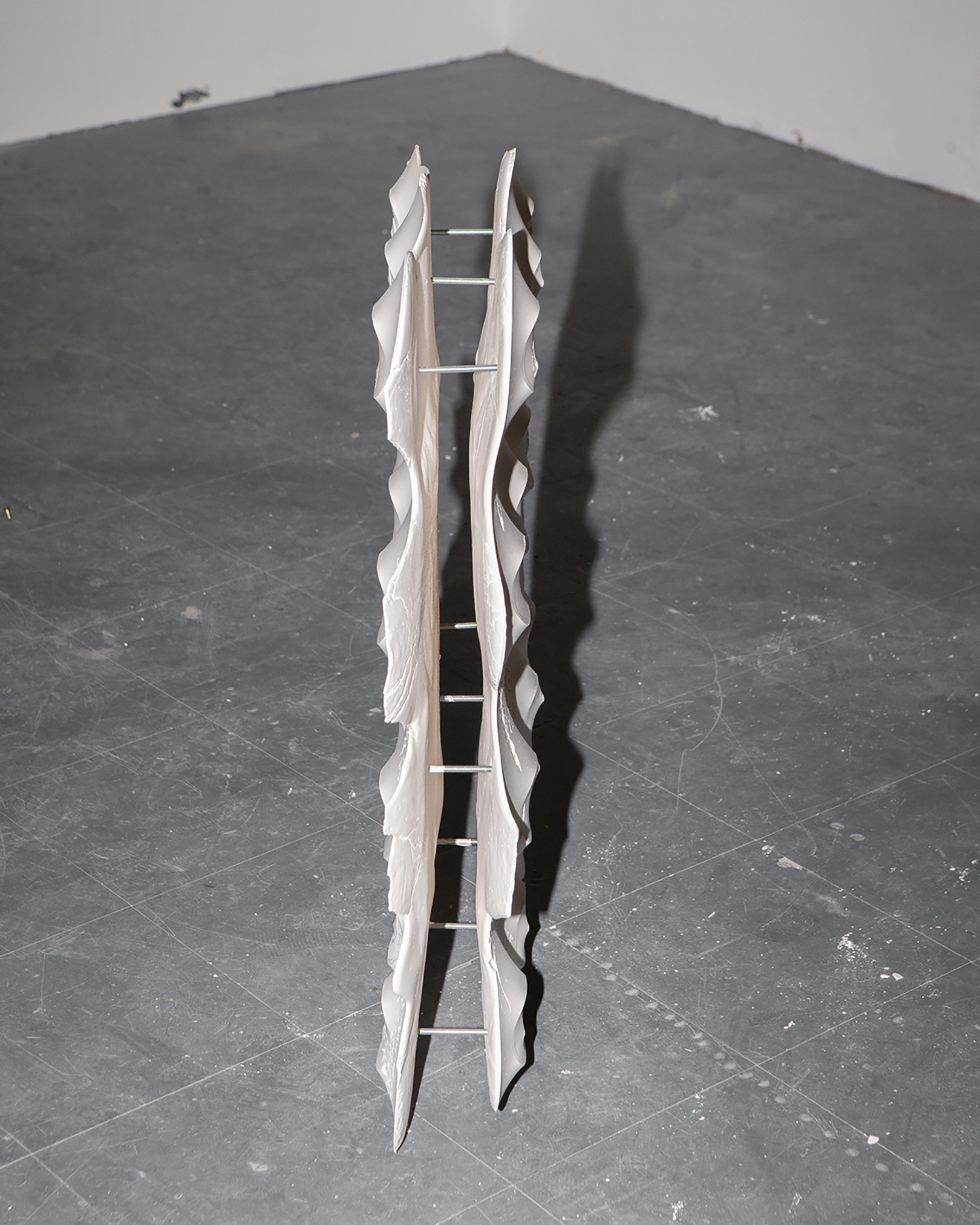 Terracotta, one of the chosen materials within Díaz Cedeño’s multidisciplinary practice, is central to several of the works on view, produced at the Studio Ernan Design kiln in Albisola during a residency made possible through a collaboration between RIBOT gallery and Museo della Ceramica in Savona.