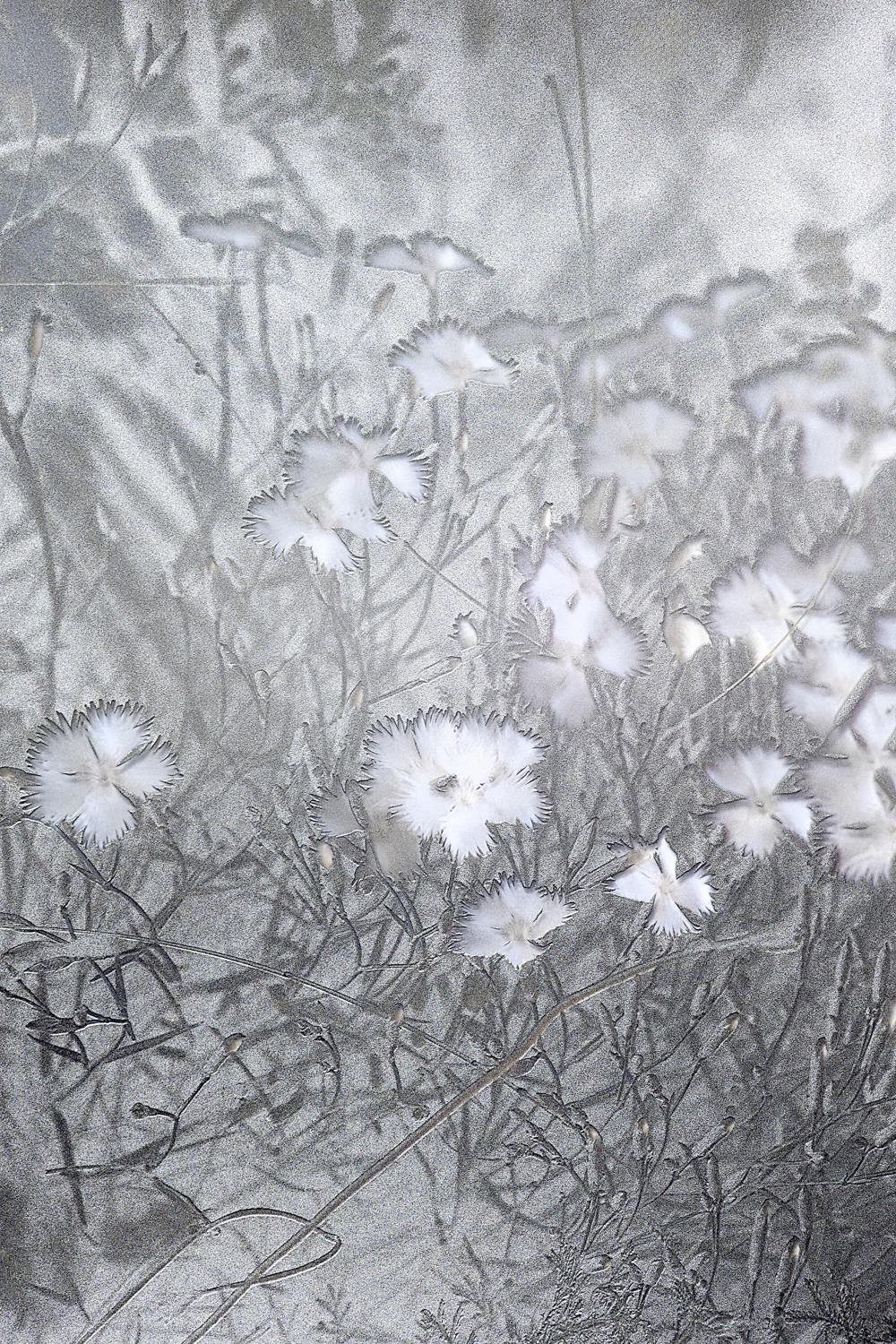 La fotografia, in forma analogica contiene delle membrane, strati di cellulosa che ricoprono ciò che è stato sensibilizzato. Durante gli anni ho raccolto materiale d’archivio in forma di diapositive che rappresentano specie vegetali catalogate dall’uomo per paura della loro estinzione. In esse si ritrovano fiori, piante e paesaggi catalogati.