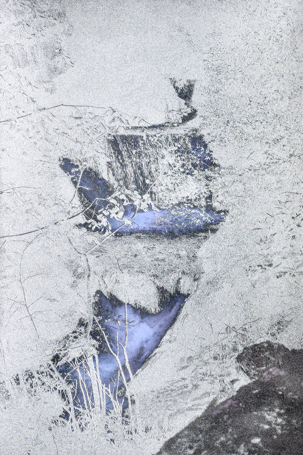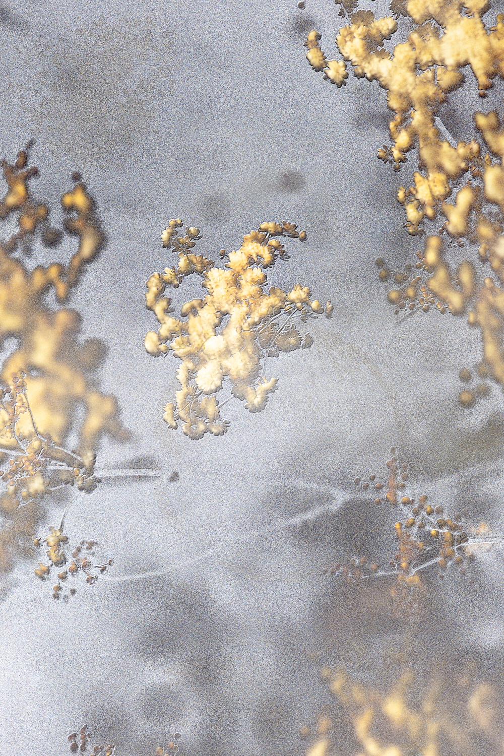 Rifotografando gli strati della diapositiva, separando la parte rappresentante l’elemento naturale dai composti chimici, ovvero l’alogenuro d’argento, ho creato delle immagini che danno vita ad un ritratto del tentativo di controllo da parte dell’uomo verso la natura.